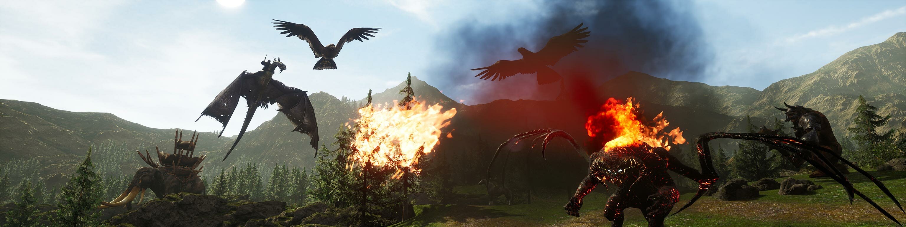 - Динамическое и разрушаемое окружение, в том числе ландшафт: плащи и флаги, реалистично реагирующие на ветер, динамическое разрушение зданий и крепостных стен и взаимодействие различных объектов друг с другом (например, юниты сталкиваются и могут взаимодействовать с другими юнитами и прочим окружением).
